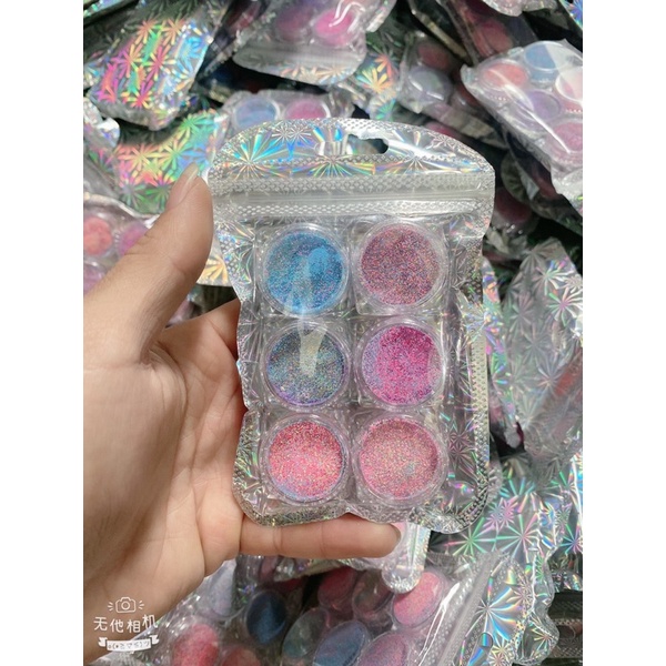 Sắc Đẹp > Chăm sóc tay, chân & móng > Chăm sóc móng > Dụng cụ & thiết bị làm móng || Sét 6 ô nhũ dạ, nhũ rắc kẻ dạ cao cấp mẫu mới