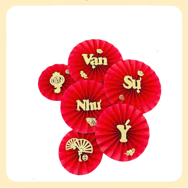 Quạt trang trí Tết thường được làm từ giấy mỹ thuật, tre, hoặc nhựa, thiết kế dạng quạt xếp nhiều kích thước khác nhau. Khi được phối hợp thành một bộ (set), quạt mang đến sự hài hòa cho không gian, tạo điểm nhấn bắt mắt cho căn nhà, cửa hàng hay văn phòng.