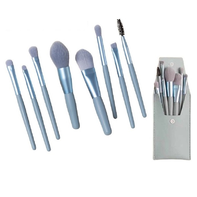 Set 8 cọ trang điểm make up cơ bản kèm túi da tiện dụng tông màu pastel