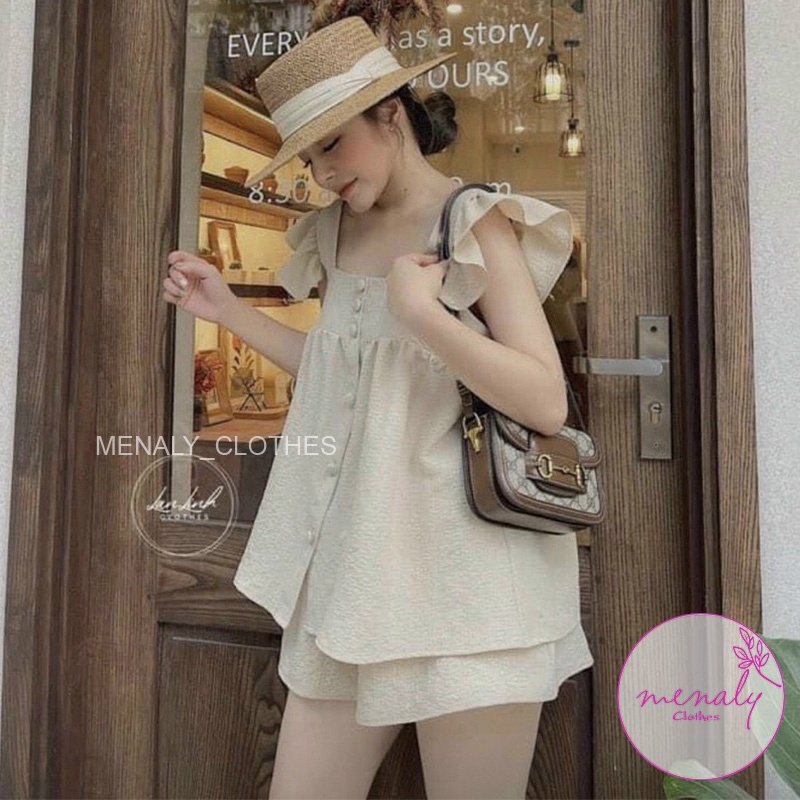 Set áo 2 dây bản to babydoll kết hợp quần short SE023,set bộ style hàn quốc áo cánh tiên dáng babydoll mặc cực thoải mái ✪ CÓ ẢNH THẬT - VIDEO TRẢI SÀN TỰ CHỤP- CÓ GẮN LOGO MENALY CLOTHES
