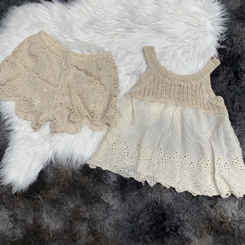 Giới thiệu set áo 2 dây kiểu cổ yếm mix quần ren hoa tròn