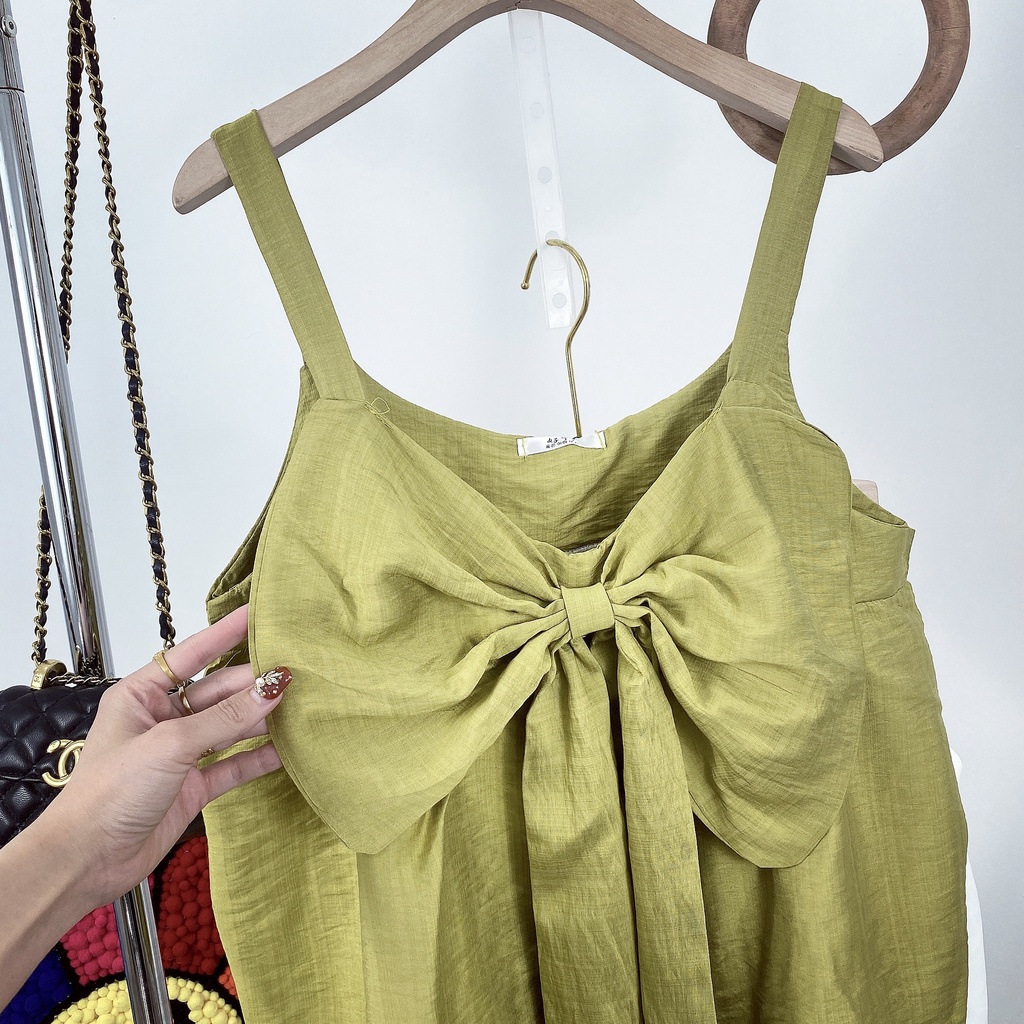 Giới thiệu Set áo 2 dây xanh cốm nơ ngực mix quần short đùi đồ bộ nữ sexy đi chơi BN886