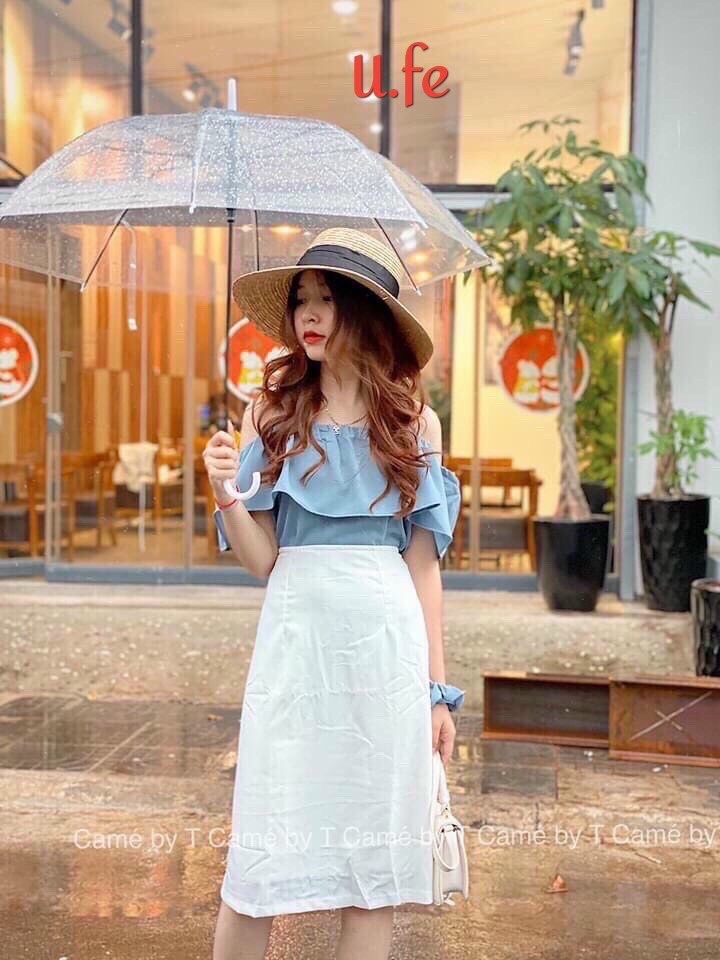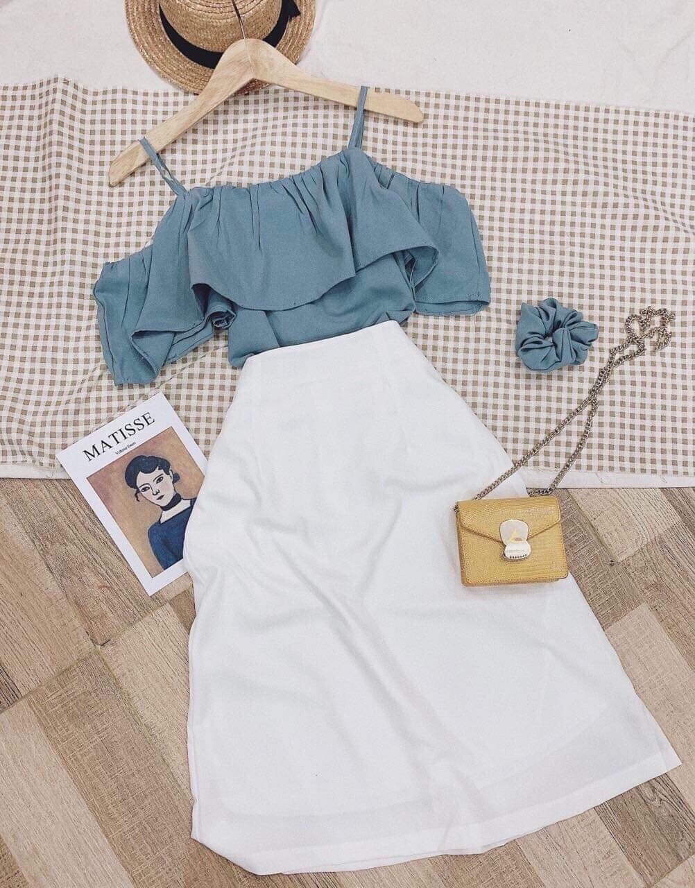 - Set áo 2 dây xếp bèo và chân váy siêu nữ tính