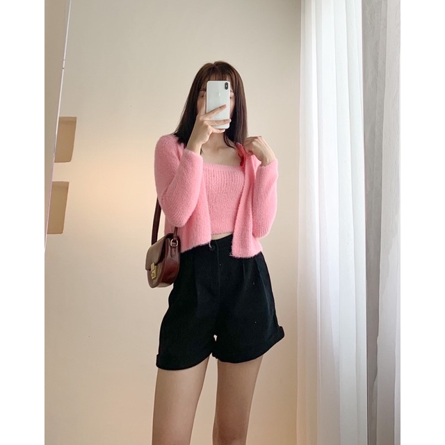 Giới thiệu Set áo 2s kèm áo cardigan len lông thỏ 011