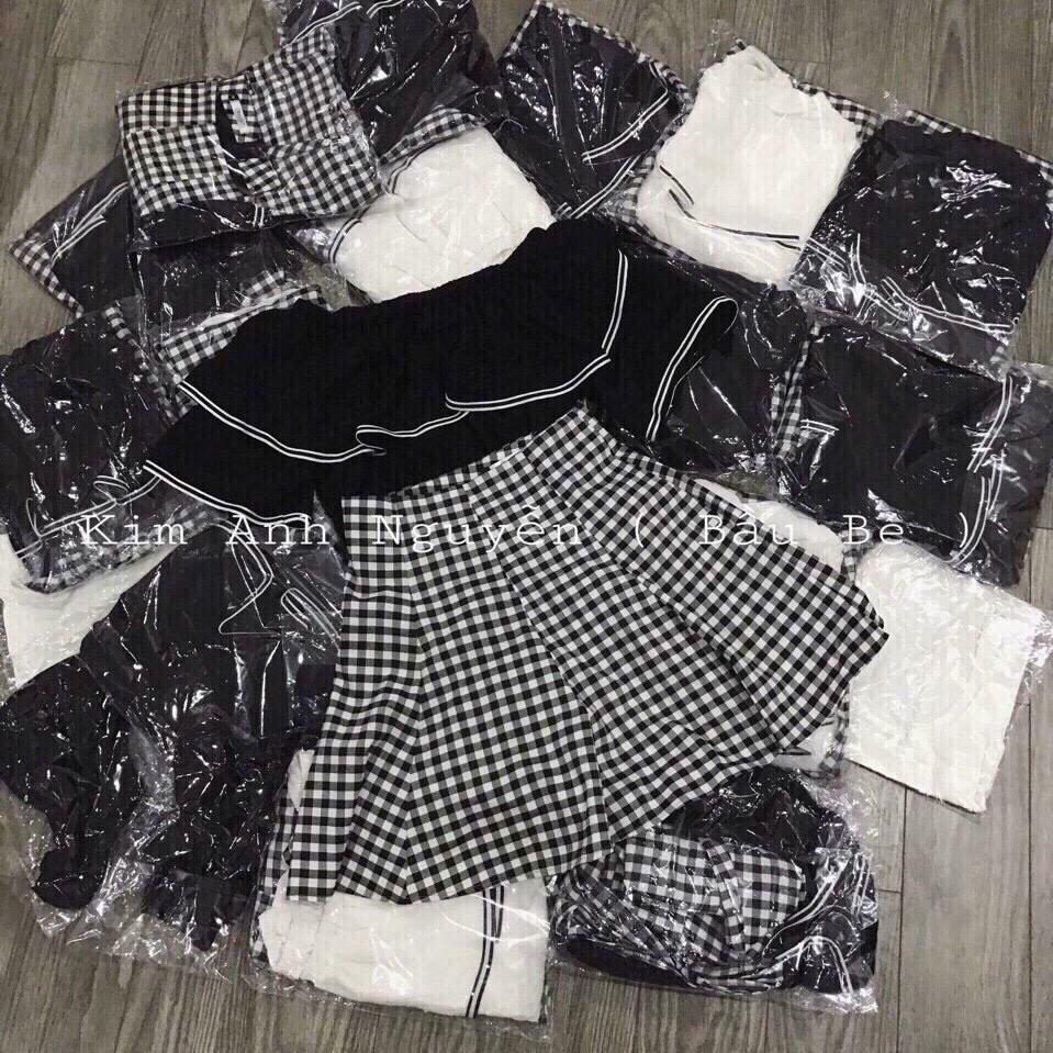 Giới thiệu Sét áo bẹt vai phối viền kết hợp với chân váy kate ngắn cực dễ thương TTS0304