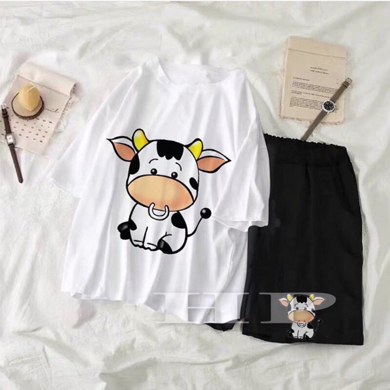 Sét áo bò sữa đeo khuyên + quần đùi 5D TH6