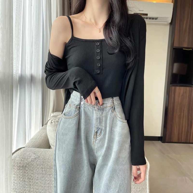 Giới thiệu Set Áo Cadigan len - áo 2 dây kèm áo khoác nữ phong cách ulzzang hàn quốc