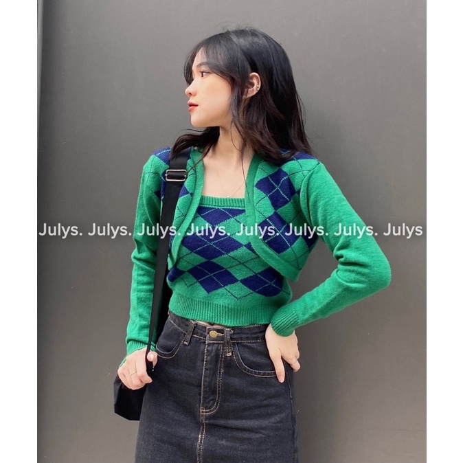 Set áo cardigan len croptop kèm áo 2 dây trendy (ảnh thật shop chụp kèm video)