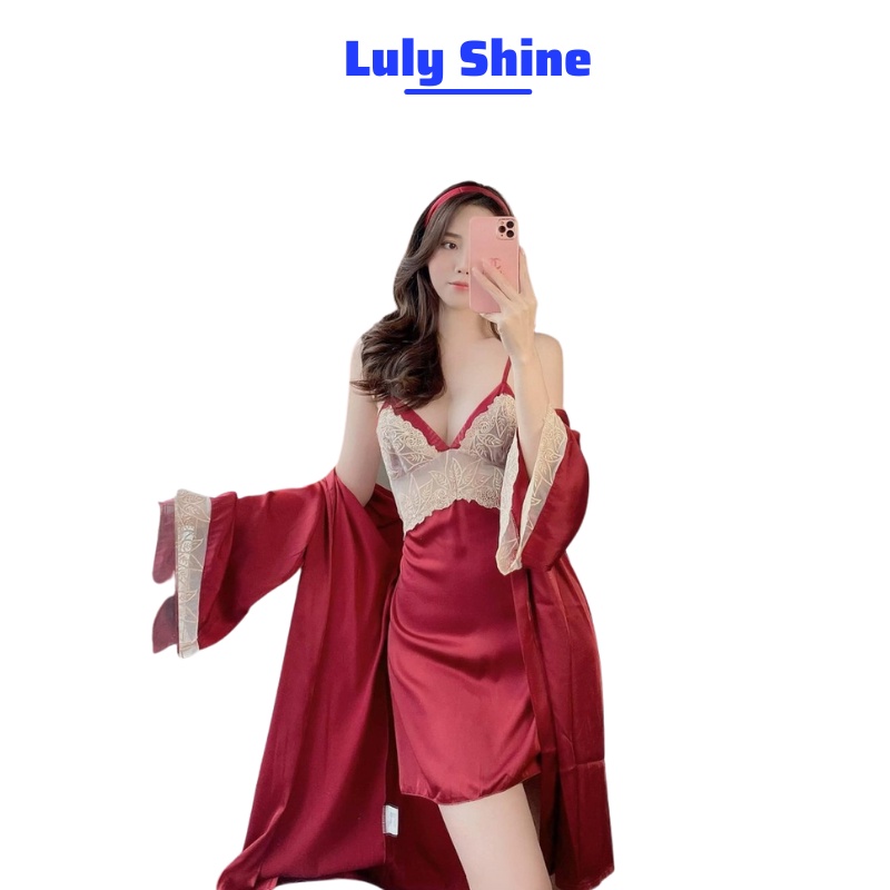 Giới thiệu Sét áo choàng ngủ, váy ngủ lụa cao cấp đầm mặc nhà sexy quyến rũ V01