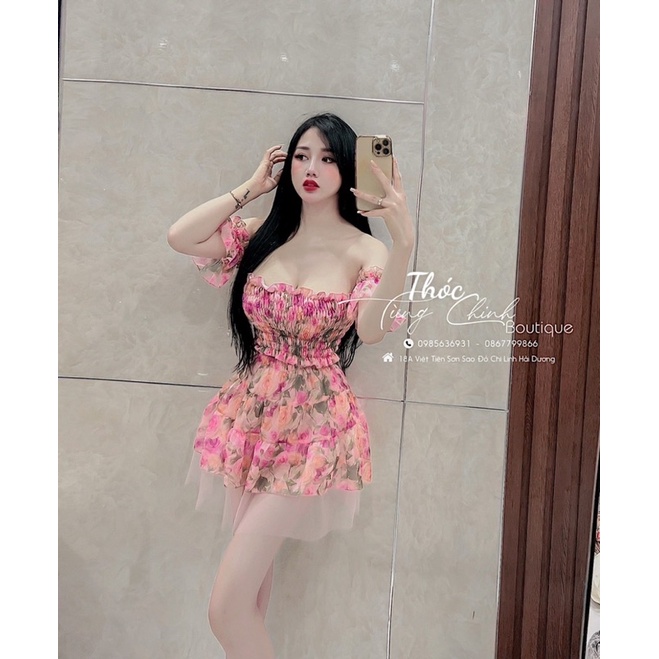 Set áo chun hoa + chân váy