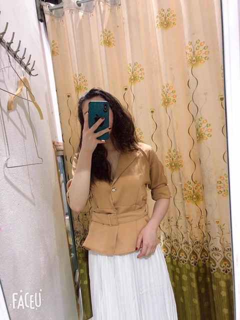 Giới thiệu Sét áo cổ vet kèm đai chân váy dập li trắng