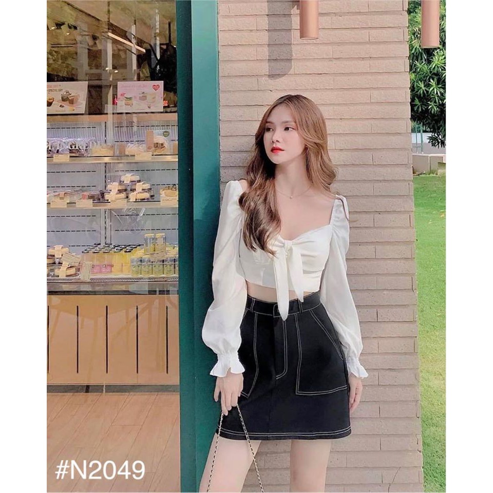 Giới thiệu SET ÁO CROPTOP TAY DÀI NƠ NGỰC KÈM CHÂN VÁY DẦY DẶN MAY VIỀN NỔI - LIEN SET