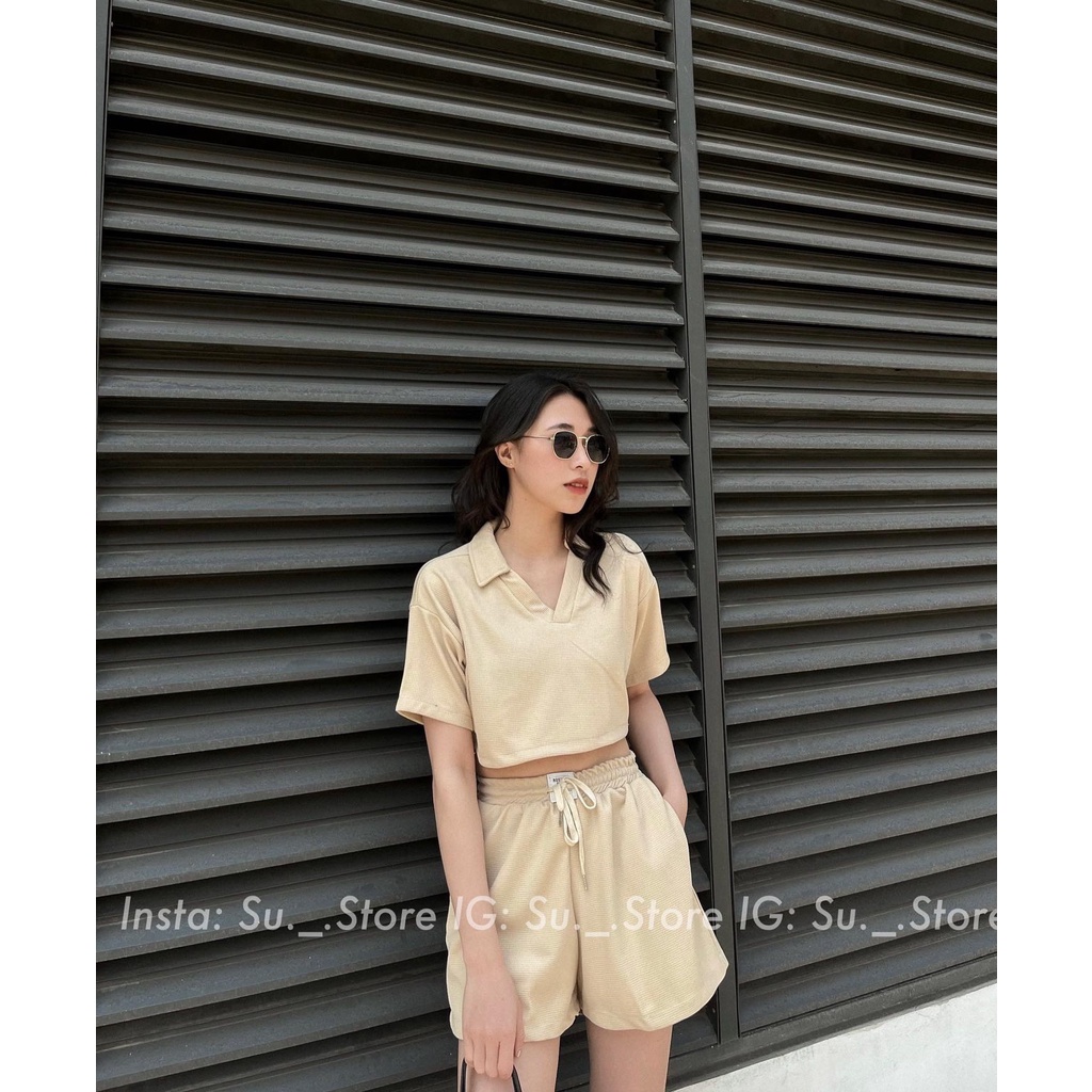 Set áo gân tăm croptop rút eo kèm short S196 SUSTORE