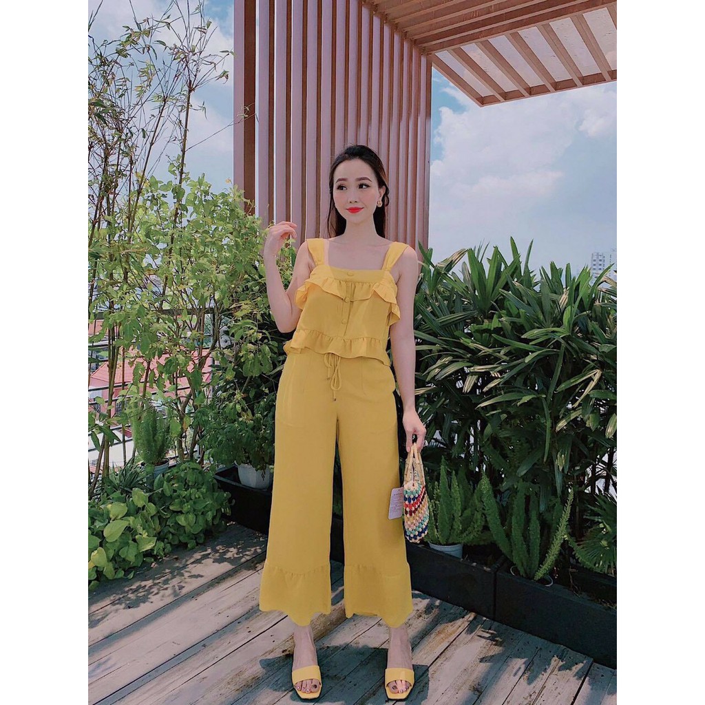 Giới thiệu Sét Áo Hai Dây Phối Bèo Kết Hợp Quần Dài Ống Rộng Mẫu Mới TTS0825