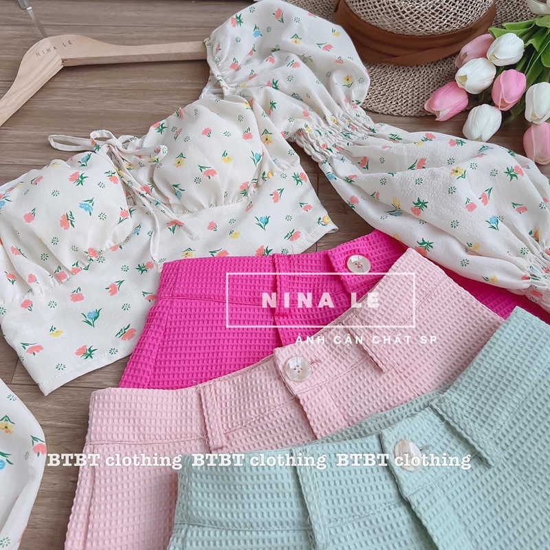 Thời Trang Nữ > Bộ > Bộ đồ đôi || Set áo hoa tay bồng + quần đùi tafta