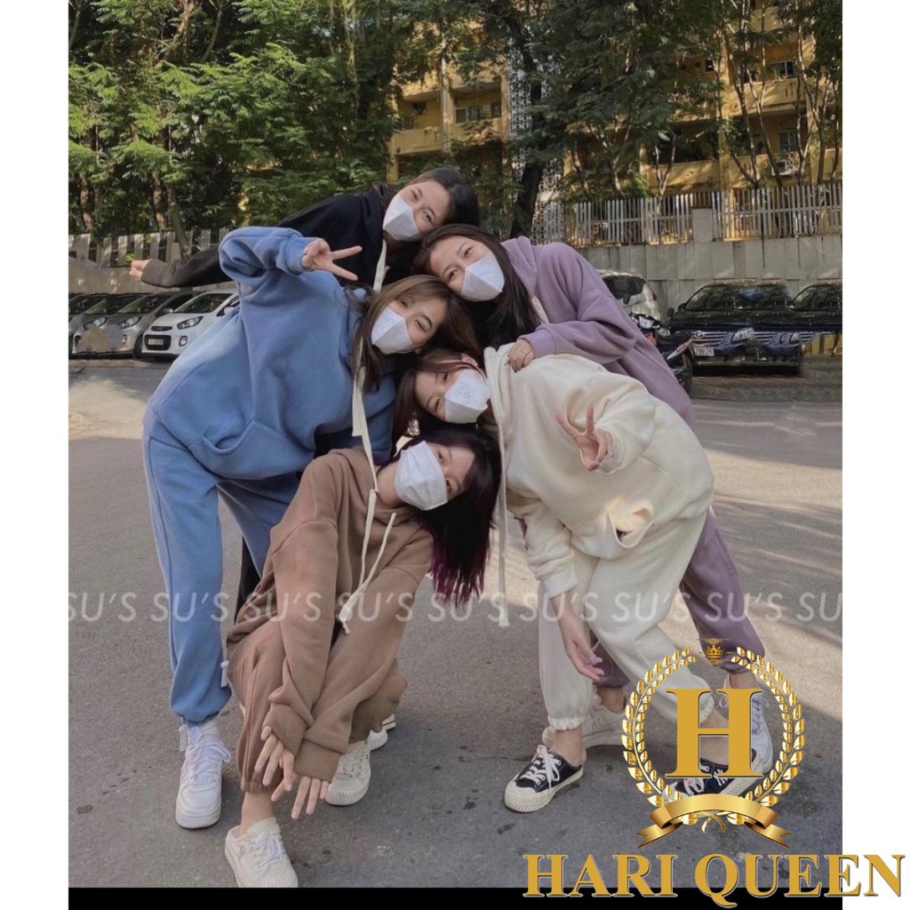 Giới thiệu Set áo hoodie trơn chất đẹp + quần bom chun gấu DTR1221