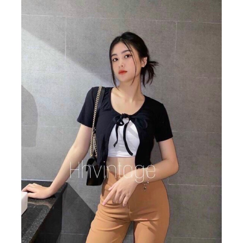 Thời Trang Nữ > Áo > Áo ống || Sét áo ống + áo khoác tay ngắn cột nơ