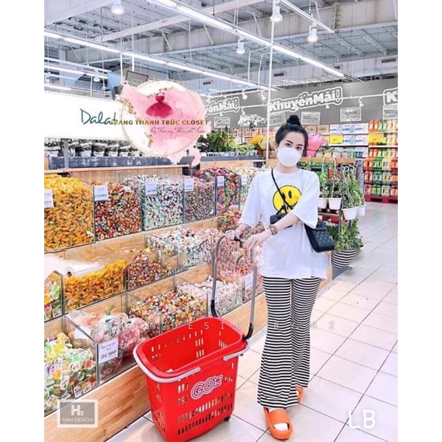 Giới thiệu Set áo phông mặt cười + quần loe kẻ
