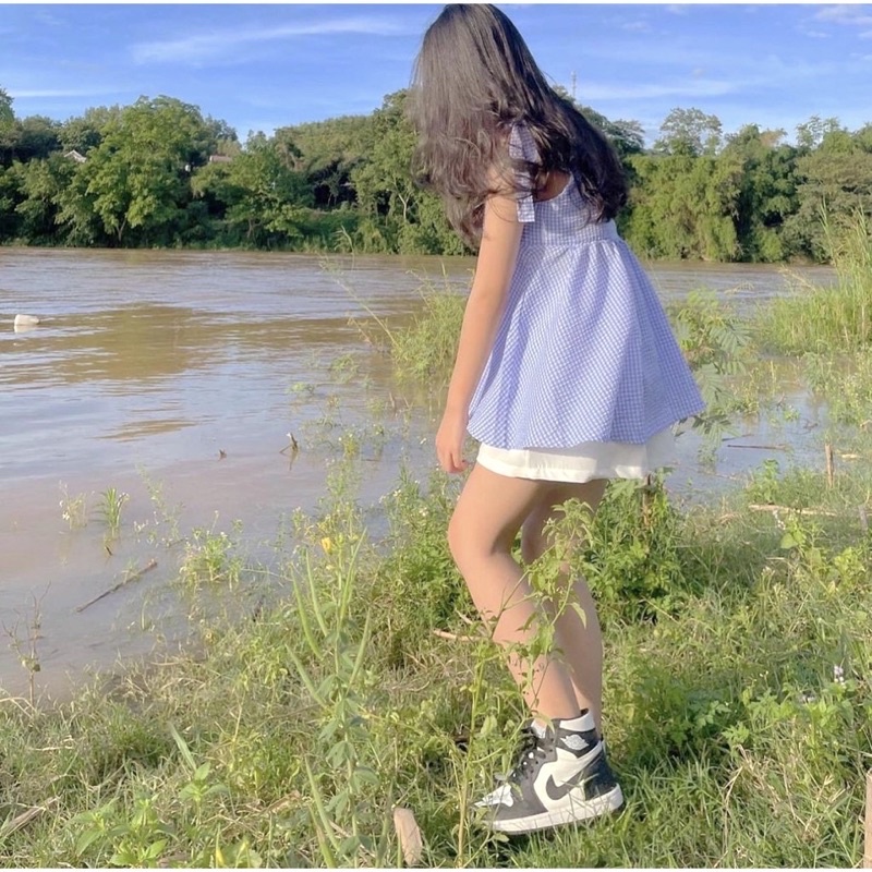 Giới thiệu Set Áo Quần Style Hàn Quốc Áo Quần Babydoll Hai Dây Thắt Nơ Kẻ Xanh Dành Cho Nữ [PHULA] Bbd Ulzzang