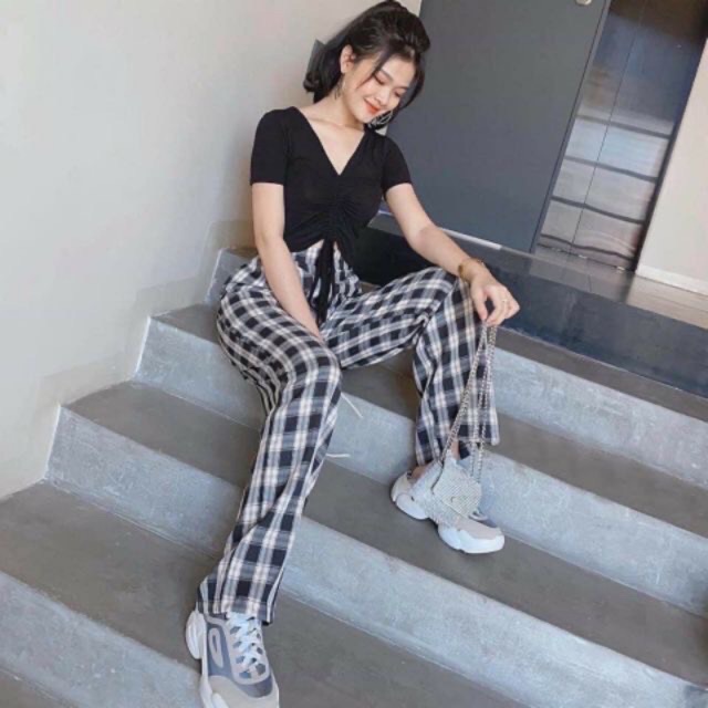 Sét áo rút dây+ quần kẻ xuông HSU1