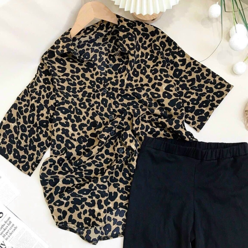 Giới thiệu Set Áo sơ mi nữ họa tiết da beo, ngựa vằn + quần short ngố,Có size to XL (Size S M L XL)