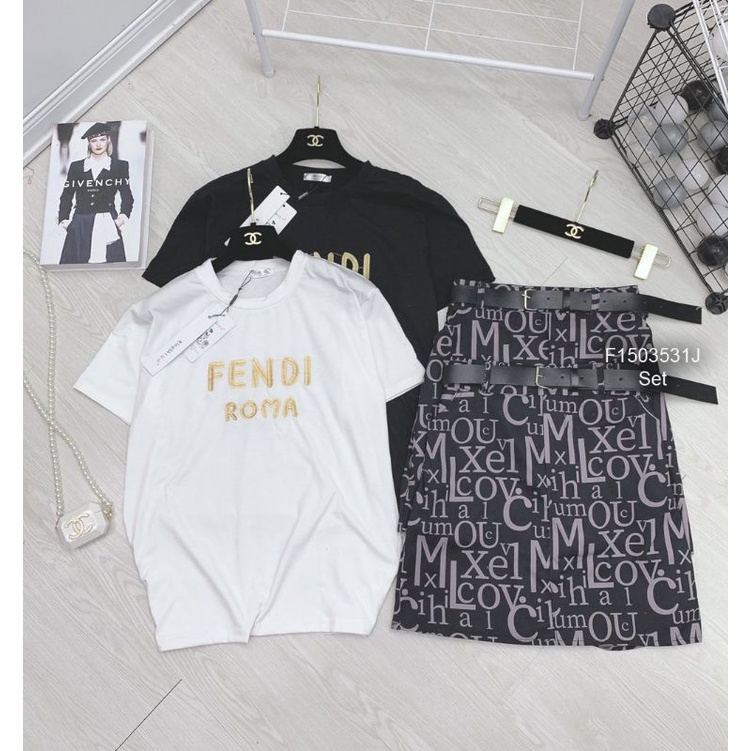 Set áo thun chữ đen chân váy ngắn chữ kaki Hàng chuẩn trải sàn Free size