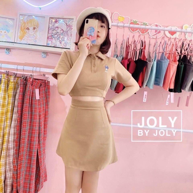 Thời Trang Nữ > Áo > Áo polo || Set áo thun cổ bẻ polo thêu ngực xinh kèm chân váy chữ A