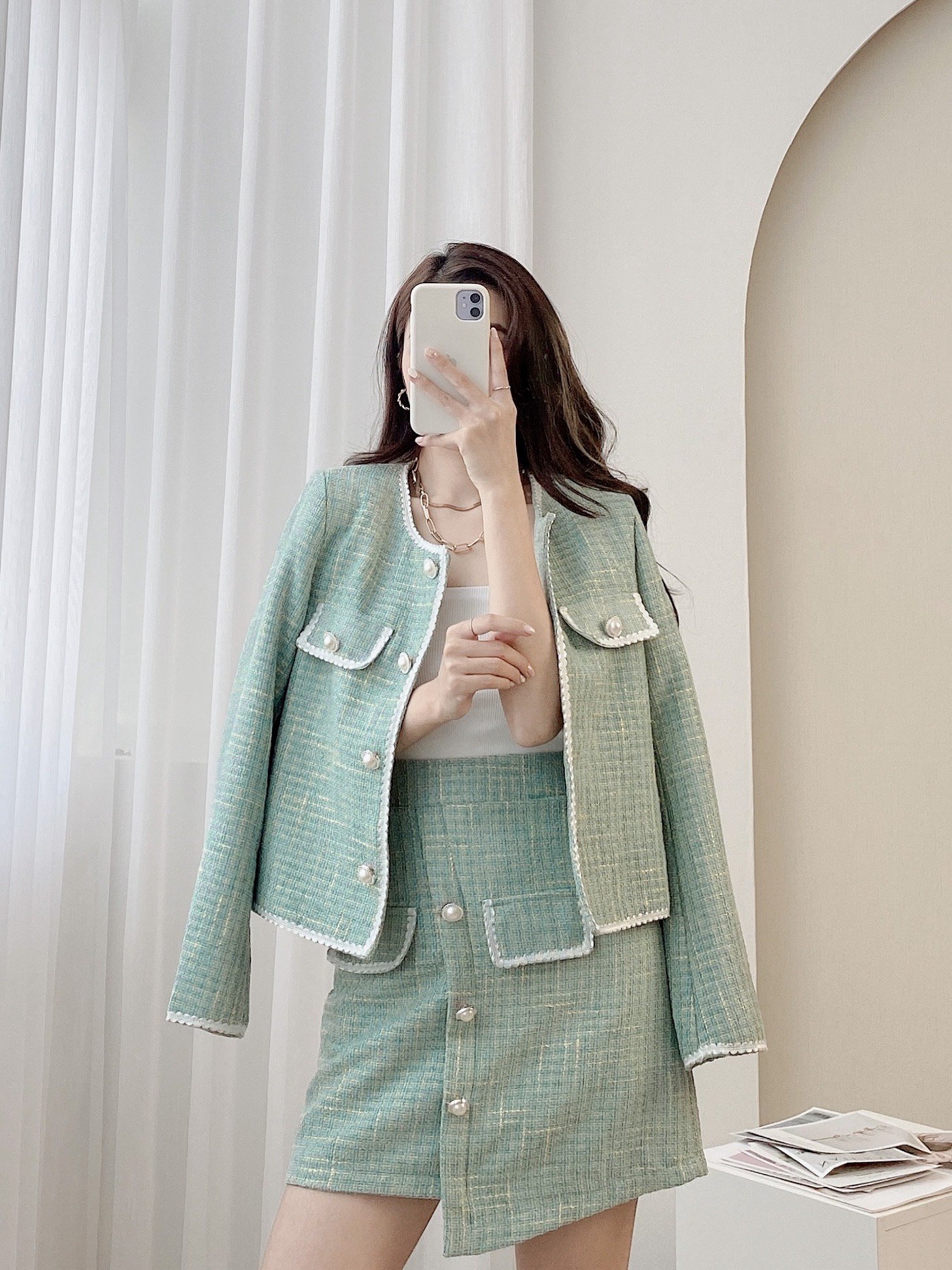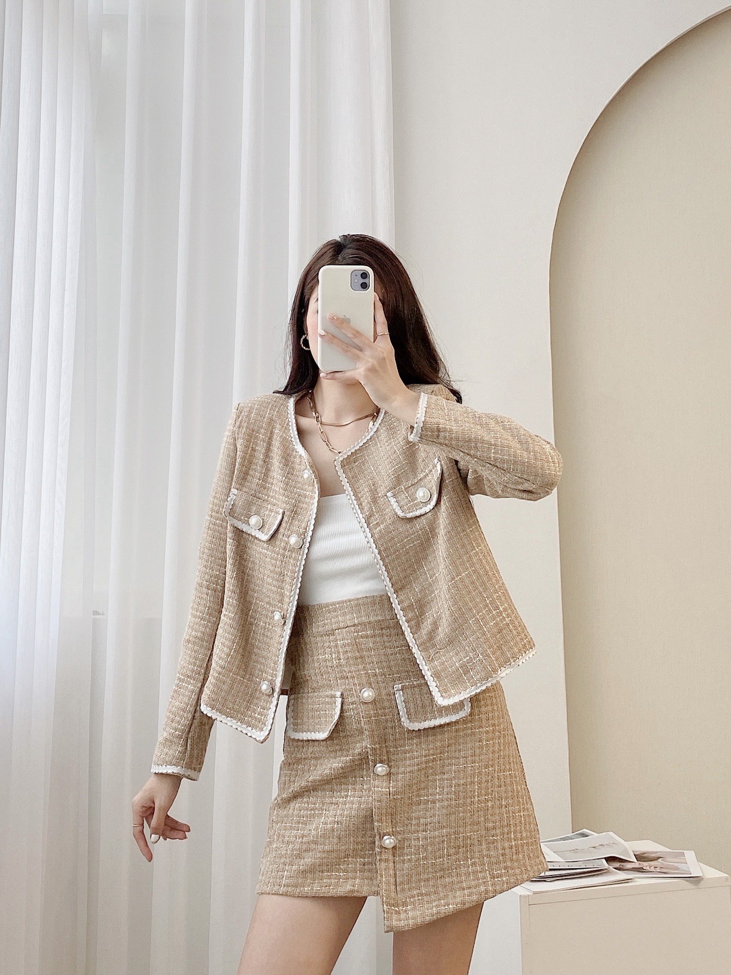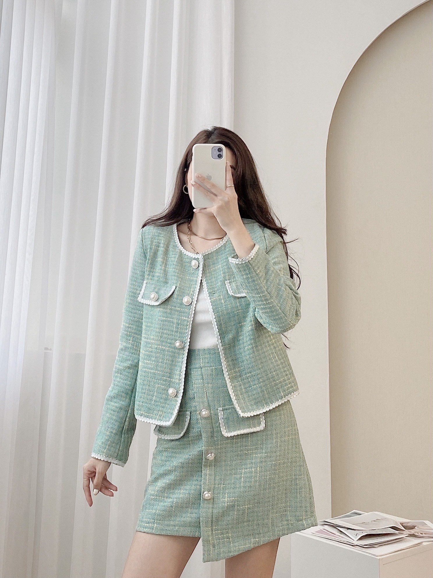 Set Áo Và Chân Váy Hàng Thiết Kế Chất Dạ Tweed 2 Lớp Cúc Ngọc Cao Cấp - Thời Trang Thiết Kế Style By Mm S336