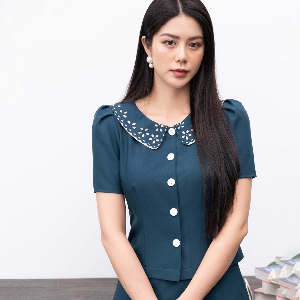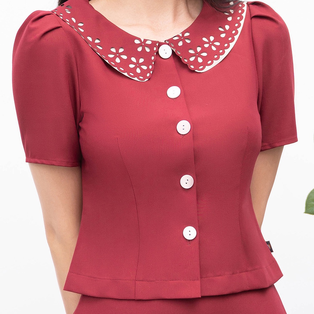 + Thiết kế cổ laze và chân váy trơn xòe mạng lại sự sang trọng, nữ tính cho người mặc