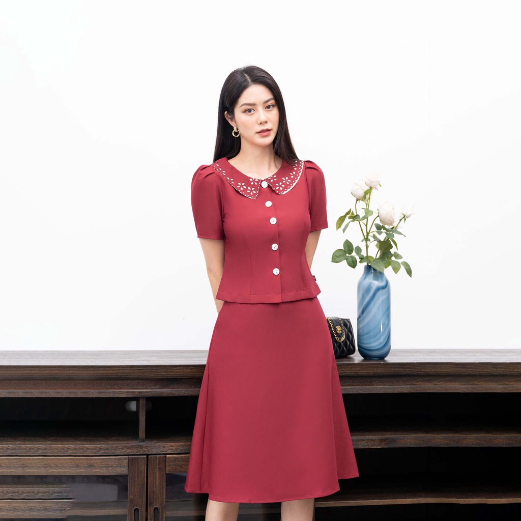 Tên sản phẩm : Set Áo Váy Nữ Công Sở Thời Trang Uk Fashion Thiết Kế Cổ Laze Kết Hợp Chân Xòe Chất Vải Nhập Hàn Mềm Mại NKBD2203009