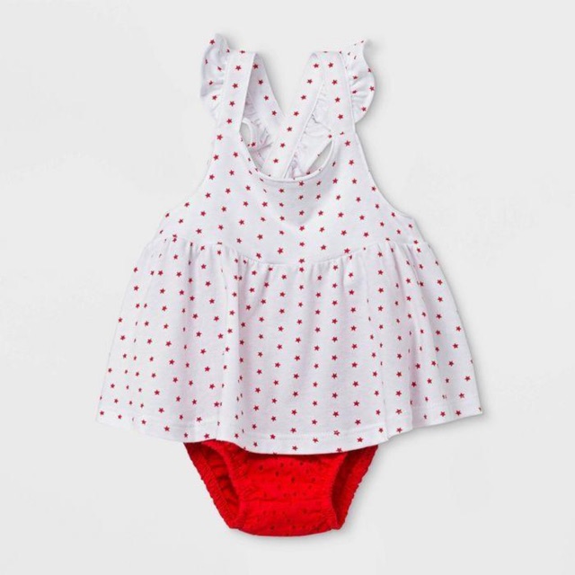 Thông tin sản phẩm ☘️Thương hiệu: Cat & Jack (VNXK) ☘️Chất liệu: 100%Cotton ☘️Kiểu dáng: áo váy hai dây bản rộng viền bèo vắt chéo sau lưng, quần chip bo chun ☘️Hoạ tiết: áo hoạ tiết sao, quần thêu rô đê sắc nét ☘️Màu sắc: trắng mix đỏ ☘️Size (TB): 0/3m-24m (sơ sinh đến 24 tháng) 👧0/3m: 3-5kg 👧3/6m: 5-7kg 👧6/9m: 7-8kg 👧12m: 8-10kg 👧18m: 10-11kg 👧24m: 11-12kg Thông số trên mang tính chất tham khảo, trên thực tế còn phụ thuộc vào chiều cao và các số đo khác của bé. ☘️Note: Sản phẩm y ảnh, màu sắc có thể đậm hoặc nhạt hơn do thiết bị chụp và điều kiện ánh sáng khi chụp. ⚠️ KHUYẾN CÁO: 👉 Vì là hàng xuất dư nên có thể tag, mác đã bị CẮT, CHE hoặc THAY THẾ trước khi đưa ra thị trường do vấn đề bảo hộ thương hiệu nhưng chất lượng thì không thay đổi nên rất mong KH cân nhắc kỹ trước khi mua. 👉Việc mua hàng online khó tránh khỏi trường hợp không HÀI LÒNG khi nhận hàng vì thế shop khuyến nghị Khách hàng xem kỹ thông tin sản phẩm cũng như chính sách ĐỔI/TRẢ của shop hoặc INBOX để được tư vấn trước khi đặt hàng. 👉Trường hợp không hài lòng khi nhận hàng rất mong KH vui lòng phản hồi lại với shop trước khi đánh giá để được hỗ trợ giải quyết nhanh nhất. 👉Nếu KH không phản hồi mà đánh giá shop dưới 5* thì shop xin phép không giải quyết mọi khiếu nại và những vấn đề liên quan. Xin cảm ơn và chúc Quý khách mua hàng vui vẻ./