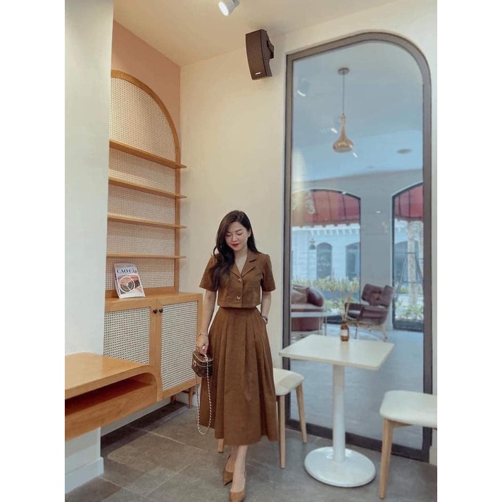 Set Áo Vest Cộc Tay Nữ Chân Váy Ly Dài Trend 2021