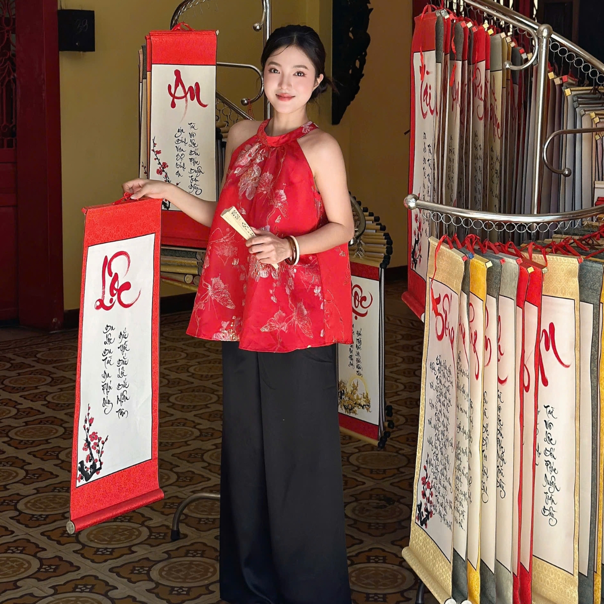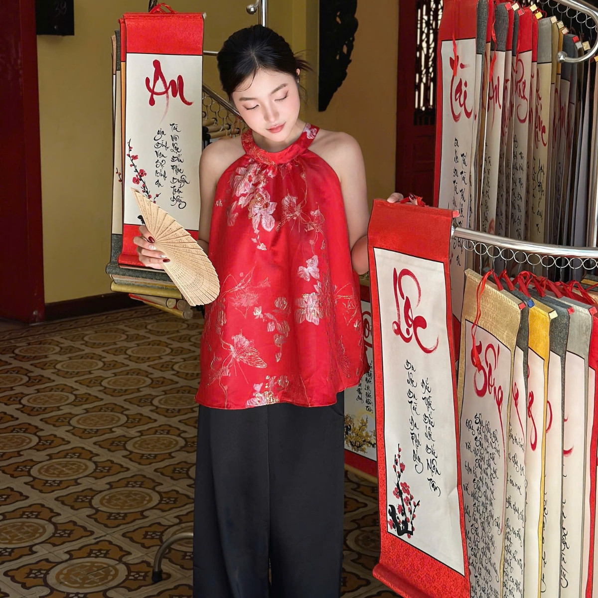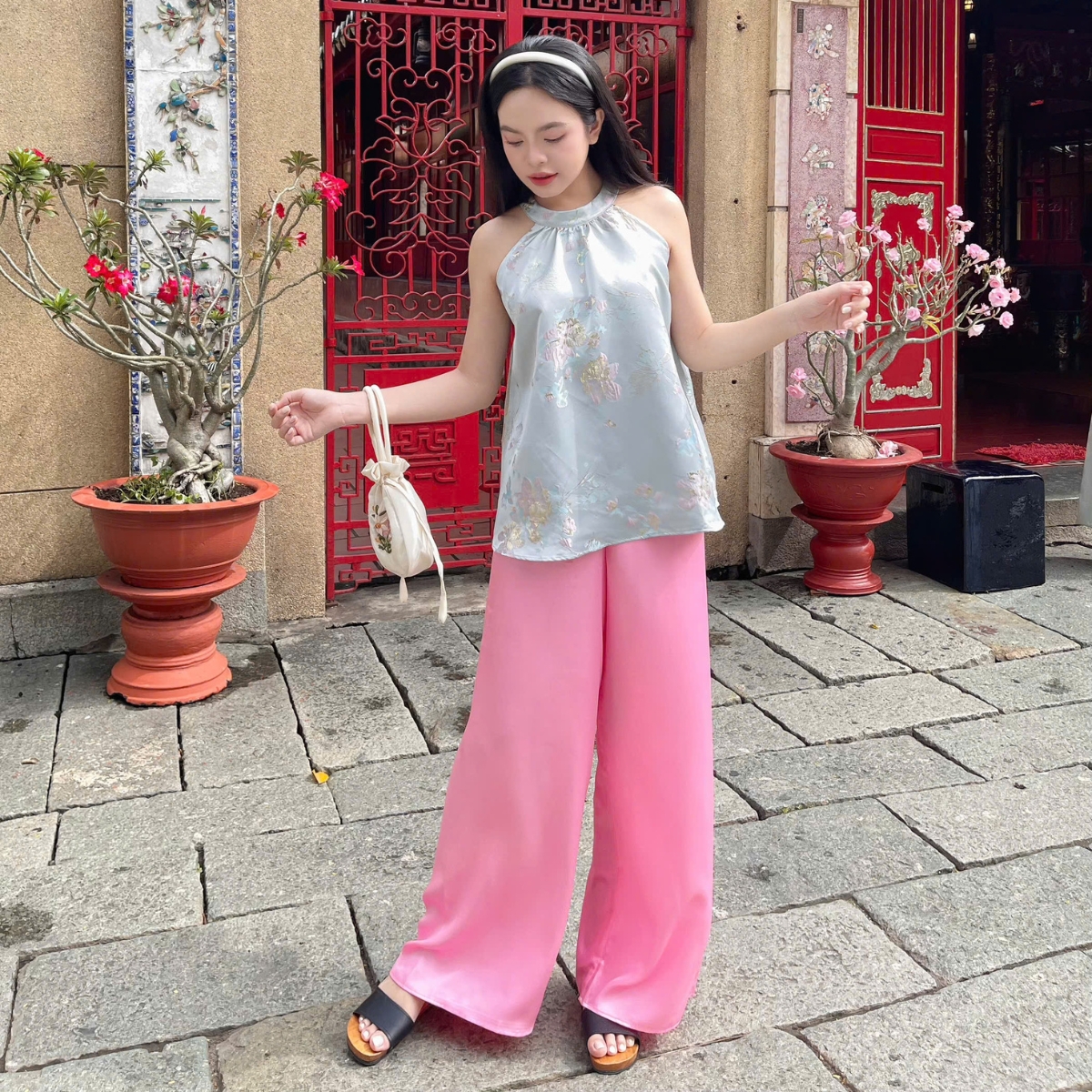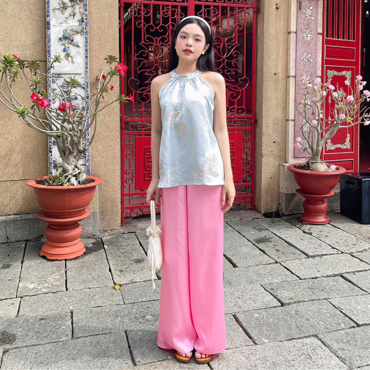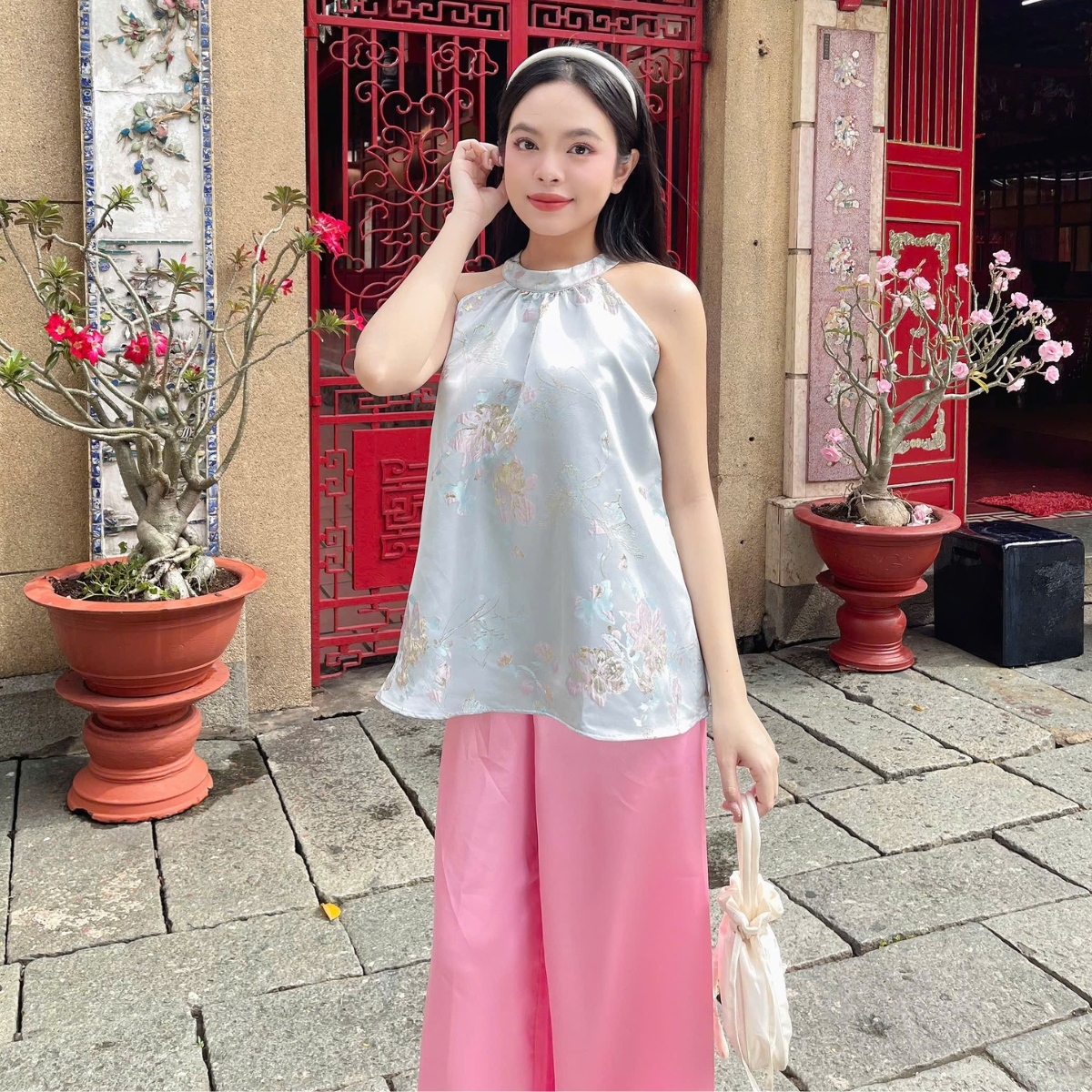 ✿ Sản phẩm : Set áo yếm kèm quần chất vải gấm họa tiết hoa dập nổi Tuệ Nhi Miều Est.2013