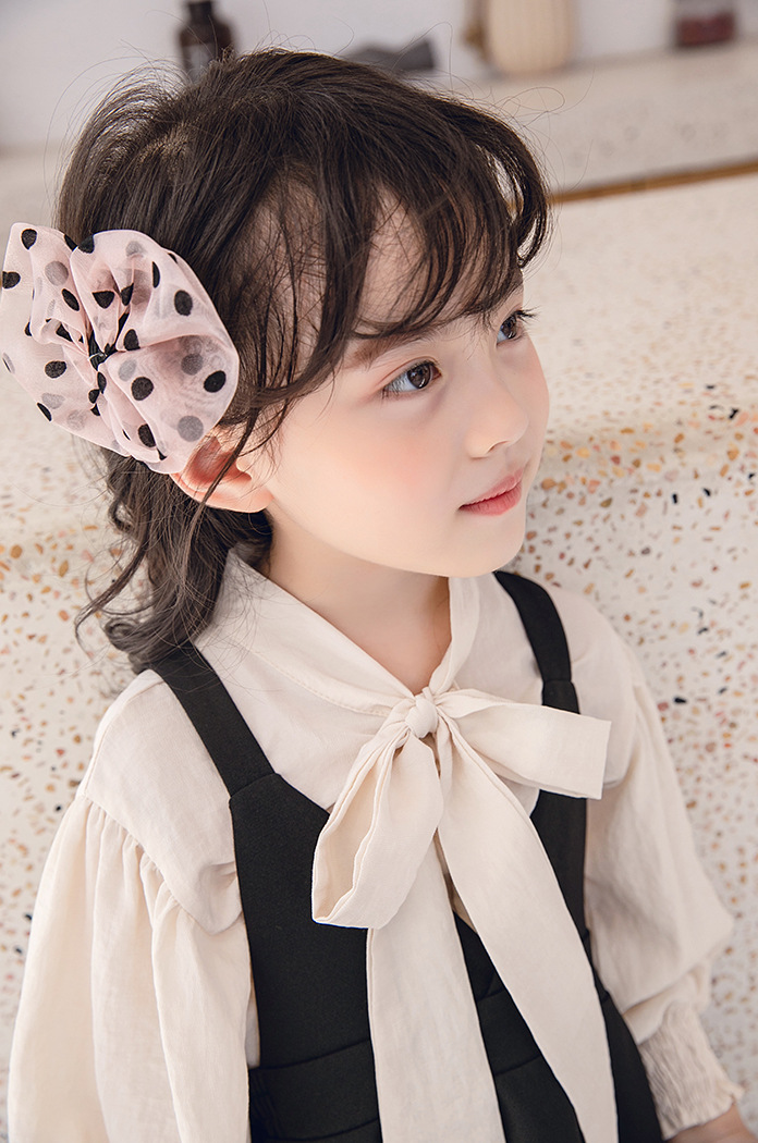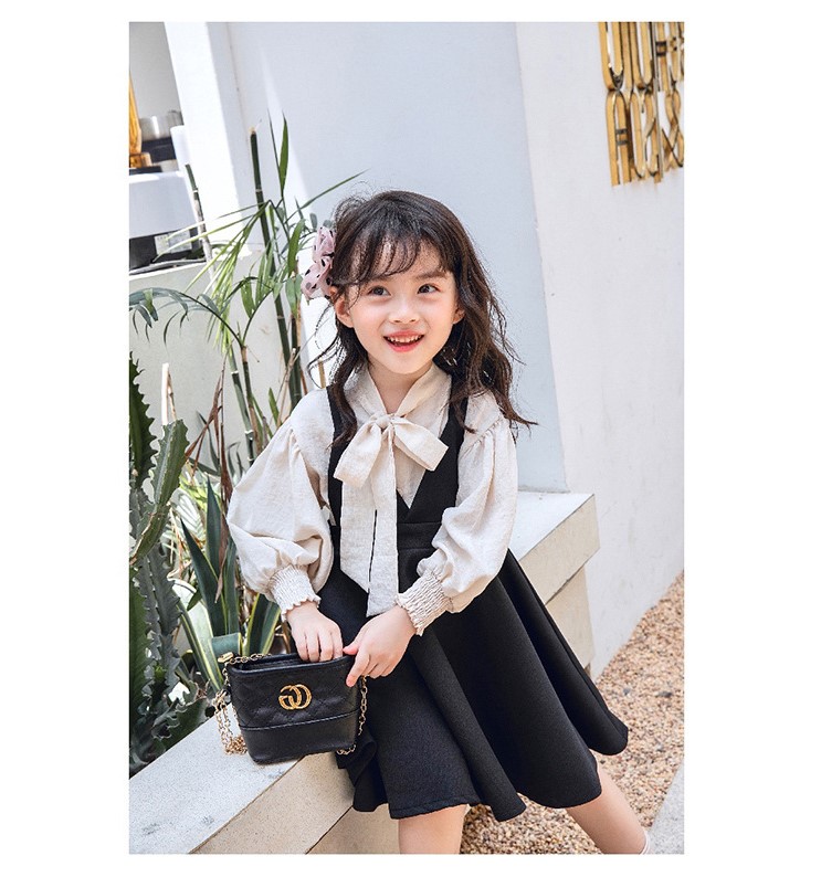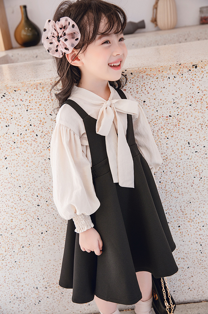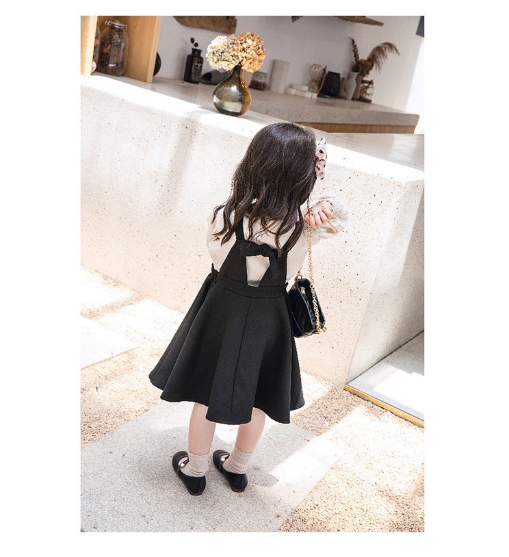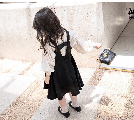 Sét bé gái áo sơ mi trắng sữa, váy yếm đen