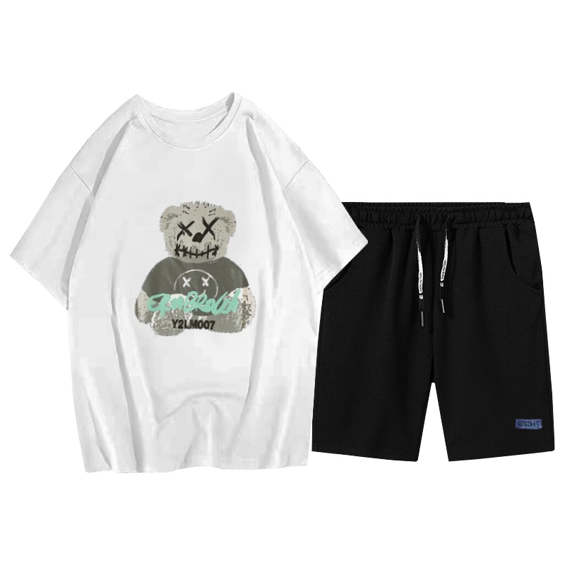 Giới thiệu Set Bộ 2 Món Quần Shorts + Áo Thun Nam Chất Vải Thun CB2_MAT173TH_MSH002THDEF6 (Gấu Bông + Trơn Logo Xanh)