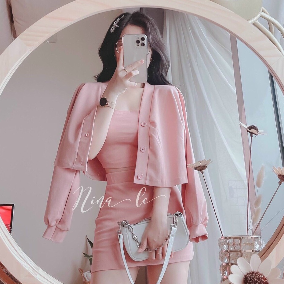 Set bộ 3 món siêu đáng yêu áo trong có mút áo khoác ngắn tay dài và chân váy ngắn xinh xắn thời trang Bella Luu Shop