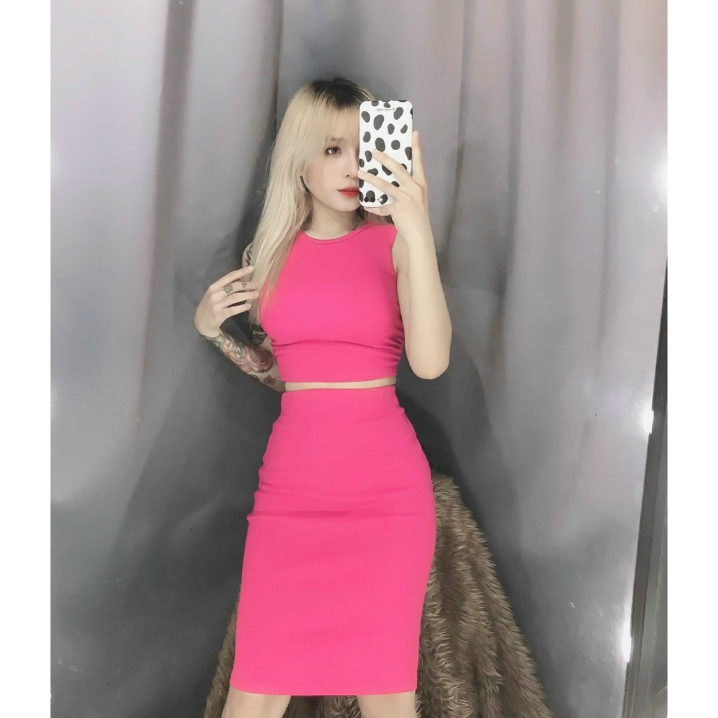 Sét bộ áo ba lỗ croptop trơn phối chân váy dài ôm body tôn dáng cực xinh , chất thun bozip mềm mịn