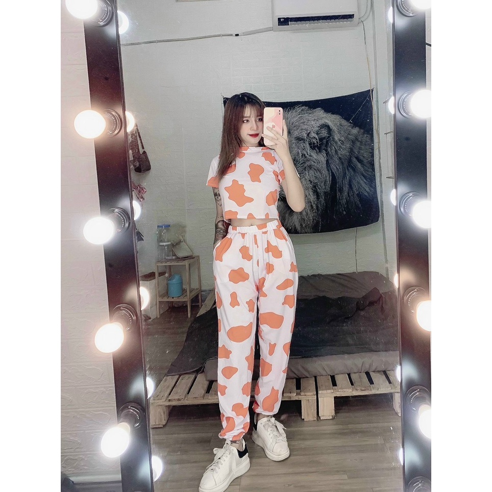 Thời Trang Nữ > Đồ truyền thống > Bộ || set bộ áo croptop kèm quần bo ống xinh màu loang bò sữa