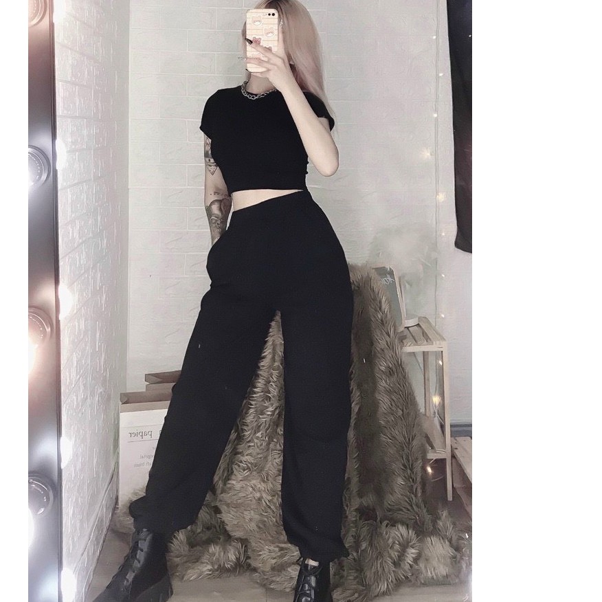 Sét bộ áo croptop trơn phối quần ống rộng bo ống cực xinh , chất thun bozip mềm mịn ( ảnh thật )