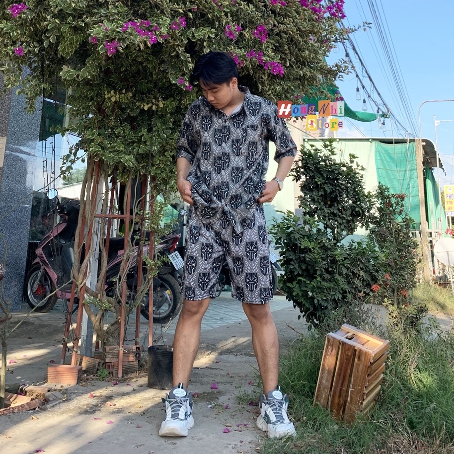 Giới thiệu Set Bộ Áo Sơ Mi Hoạ Tiết Phối Quần Cartoon Đùi Dáng Rộng Ulzzang Unisex - MM