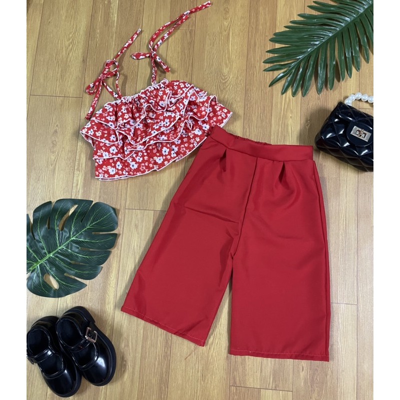 Thời Trang Nữ > Áo > Áo ống || Set Bộ Bé Gái Áo Hai Dây Vôn Hoa 3 Tầng Phối Quần Ống rộng Chữ A Vải Lụa Mềm Mại