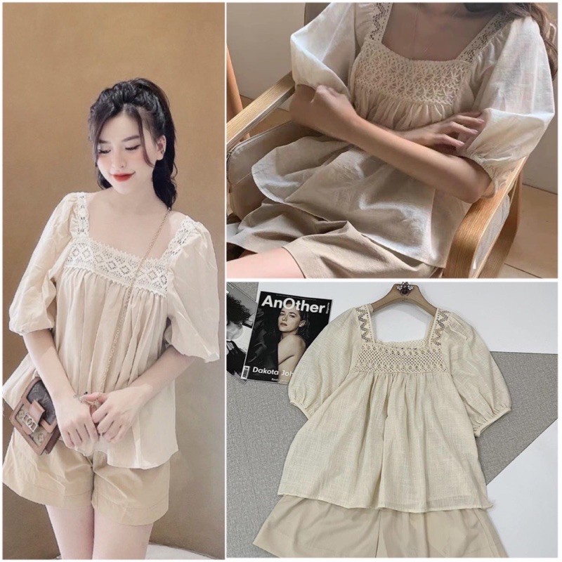 Giới thiệu Sét Bộ Đũi Ren Be Cổ Vuông Bộ Nữ Viền Ren Xinh Xắn