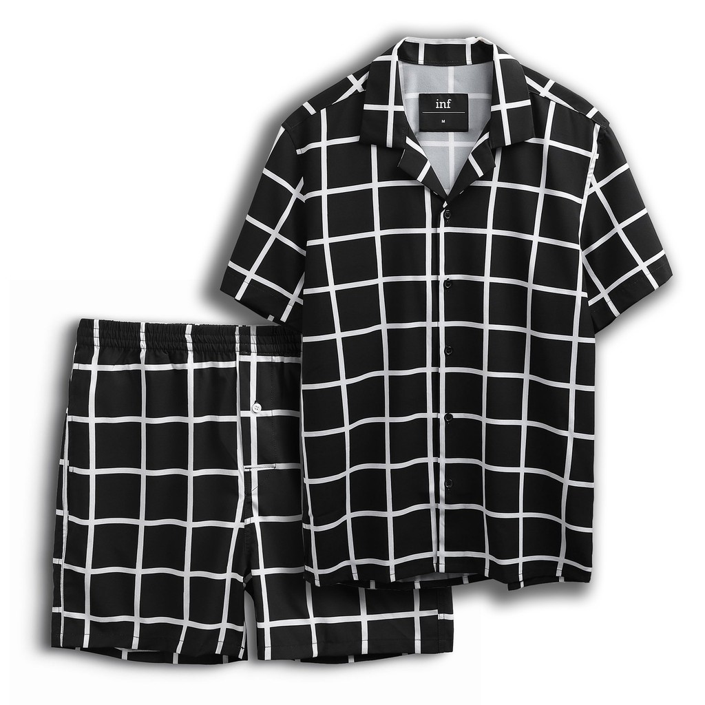 Giới thiệu Set Bộ Nam, Sơ Mi-Quần Đùi Đen Sọc Thời Trang Cao Cấp, Chất Vải Cotton Lụa, INF SB000763, SOMEHOW