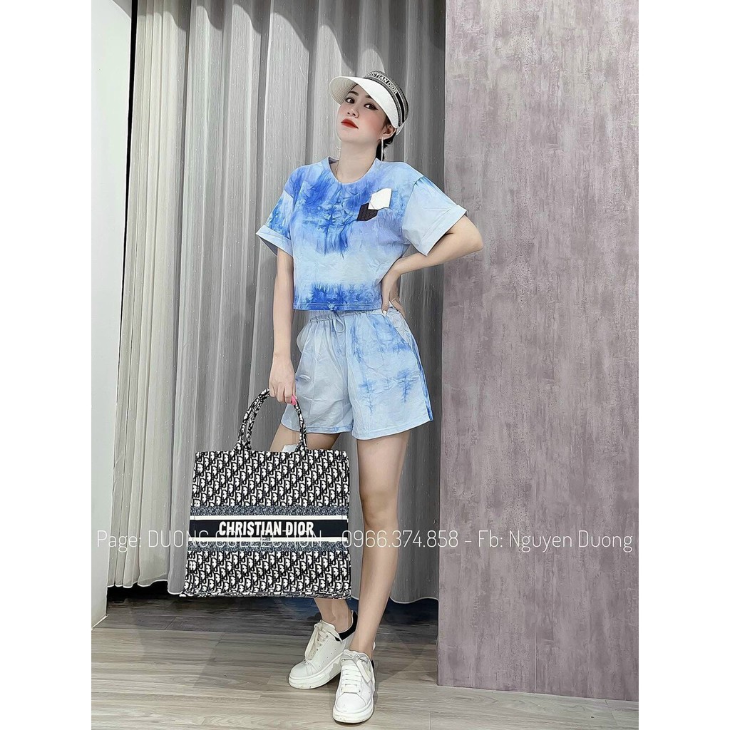 Thời Trang Nữ > Đồ liền thân > Đồ bay ngắn (playsuits) || Sét bộ ngắn thun poly lạnh in 3D loang màu cực teen TTSA1159