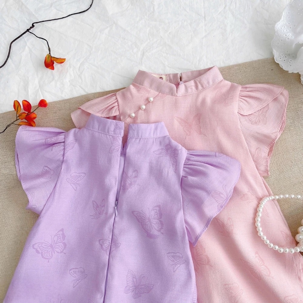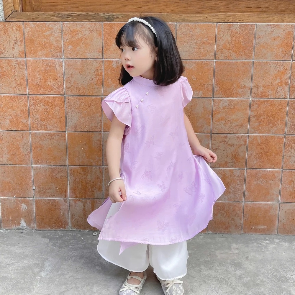 1. Tên sản phẩm : Set Bộ Quần Áo Dài Họa Tiết Hồ Điệp Tay Ngắn Phồng Cho Bé Gái 1-8 Tuổi Dành Cho Bé Gái