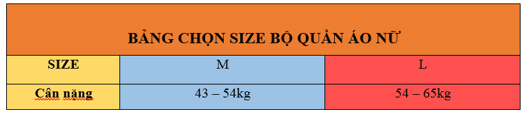 Áo + legging lửng co giãn 4 chiều nên nếu bạn gái cứ tự tin chọn theo cân nặng nhé.