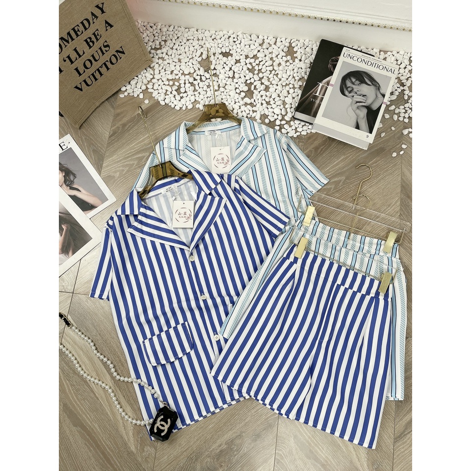 Giới thiệu Set bộ sơ mi đùi kẻ vest xanh siêu cá tính đồ bộ nữ cá tính TH592