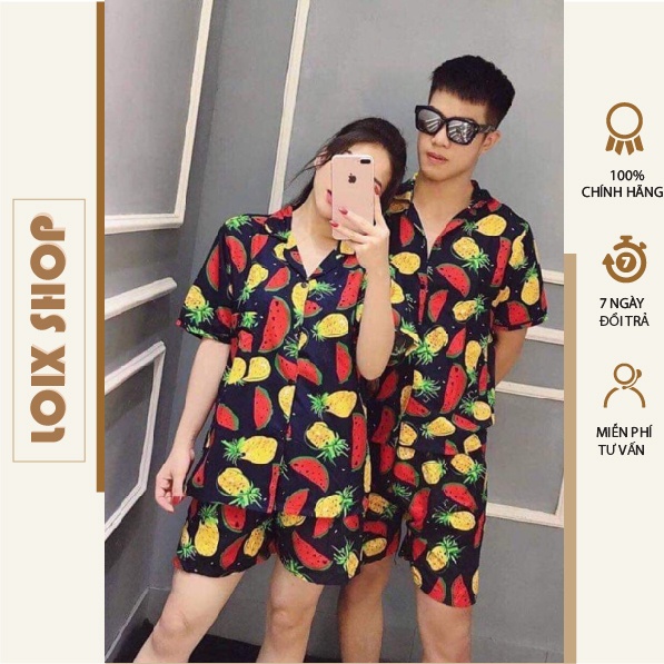 Thông tin sản phẩm set bộ sơ mi hoa quả đi du lịch biển LOIX mã 983 M(<55kg)(L(55-65kg)(XL(66-75kg)( Ngập tràn mẫu mới Vải đẹp , không xù , không co rút , mềm mịn dày dặn , hút mồ hôi cực nhanh, mặc siêu mát . Nhận THU HỘ ( ship COD ) toàn quốc