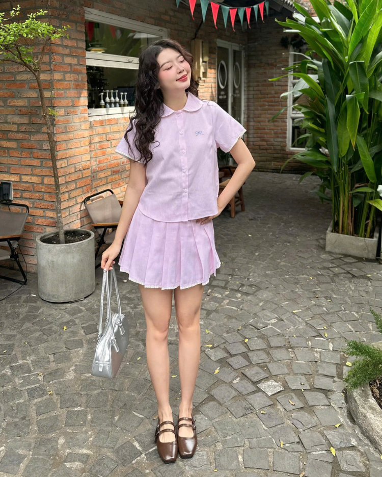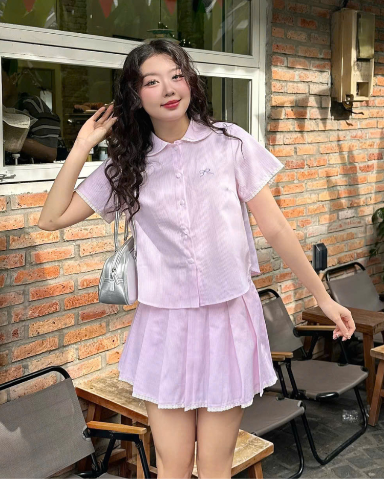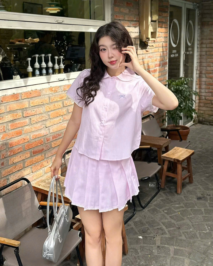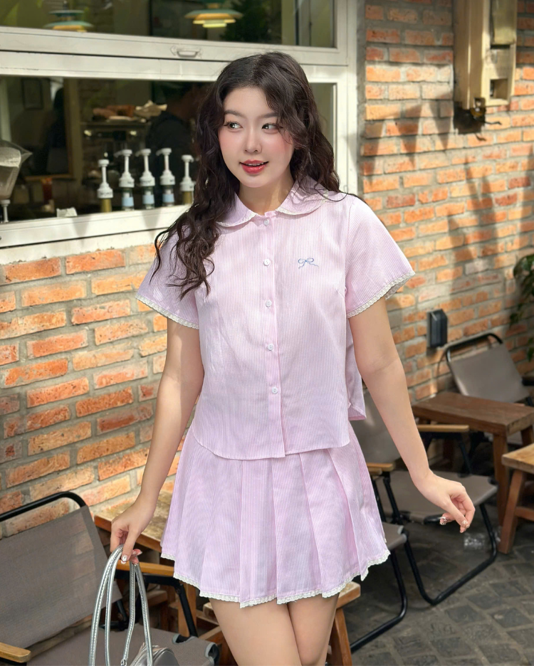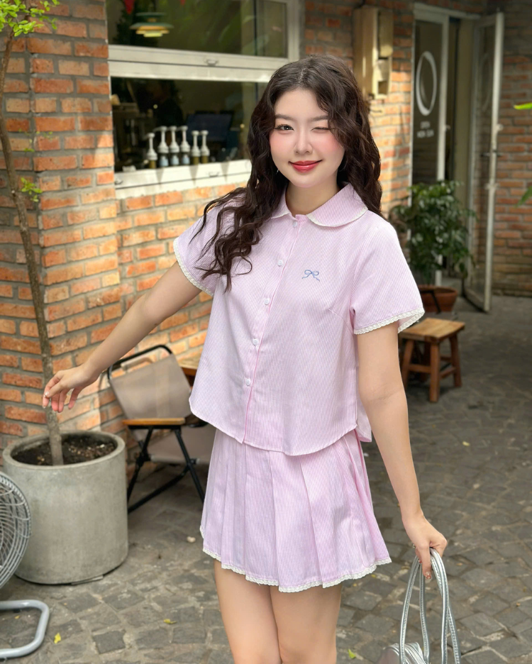 ✿ Sản phẩm : Set bộ sọc kèm chân váy thêu nơ trước viền ren kiểu dáng trẻ trung nữ tính Suni Miều Est.2013
