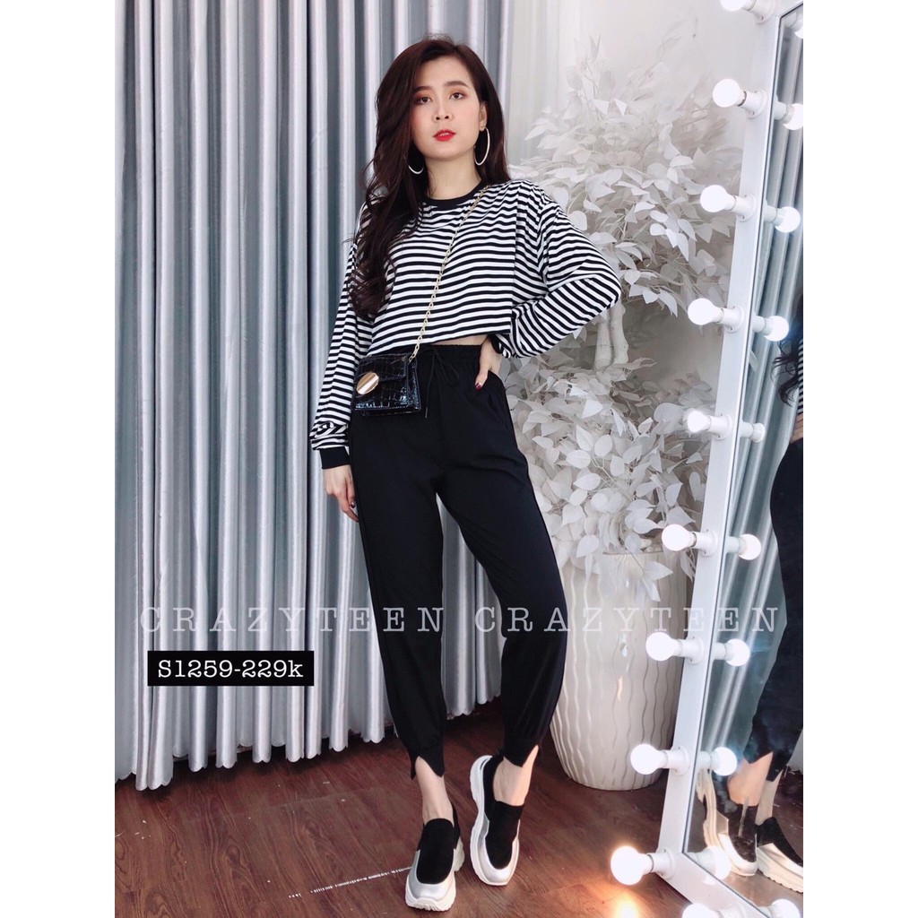 Giới thiệu Sét bộ sọc kết hợp quần dài ống xẻ năng động TTSA0118